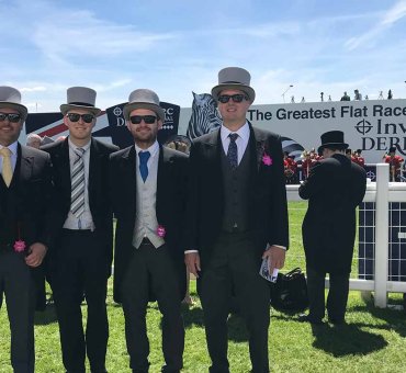 Top hats and tails for the Sunville team as In The Red runs at The Epsom Investec Derby Day races...